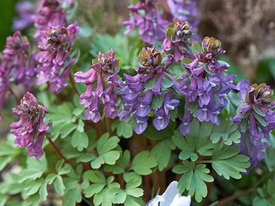 во время цветения достигает в высоту 10—25 см. Цветки розовато-лиловые, 1—2 см в диаметре, собраны в плотное кистевидное соцветие. Цветет в конце апреля — мае. Хорошо размножается самосевом, дочерними клубнями.